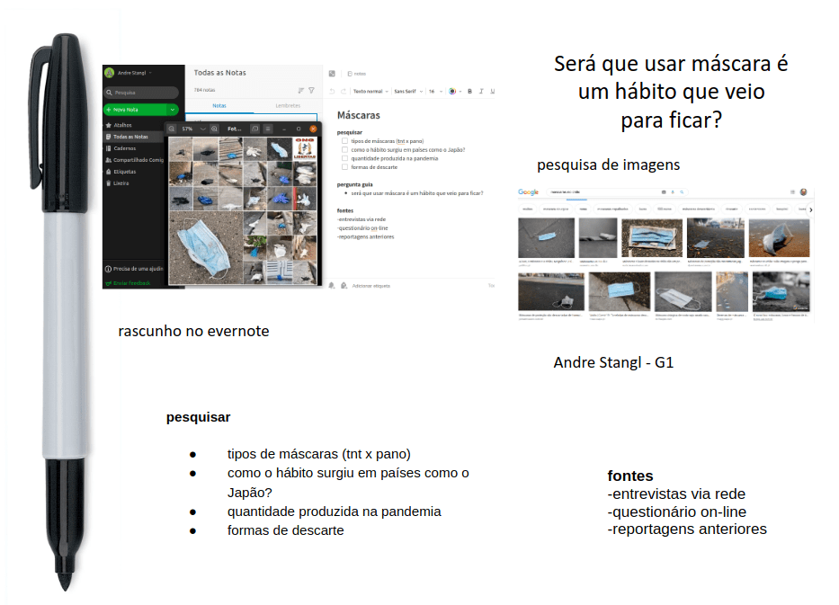 Na atividade seguinte a gente experimentou um pouco de design thinking tentando aplicar suas possibilidades para contar uma história de forma mais criativa. O tema provocador era pensar em algo sobre o mundo pós pandemia.